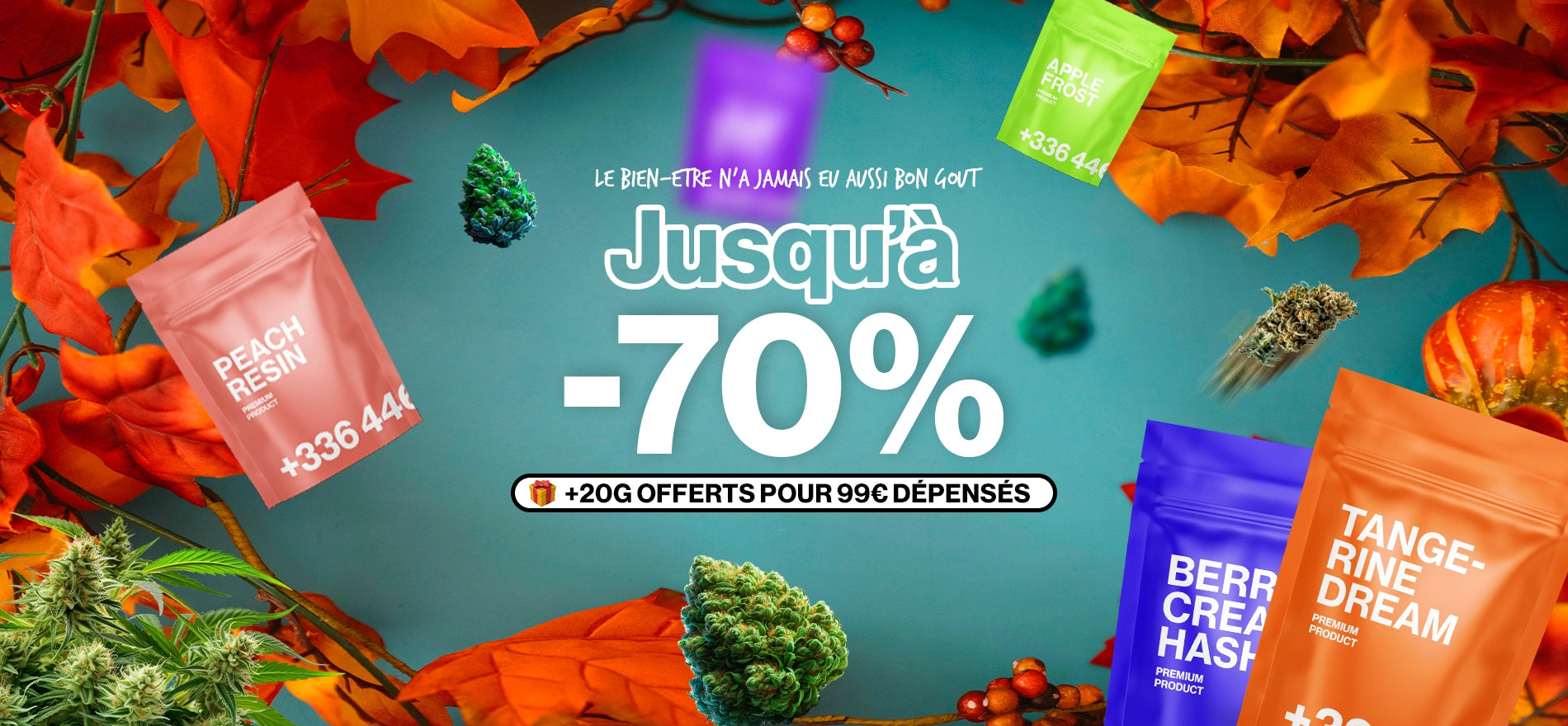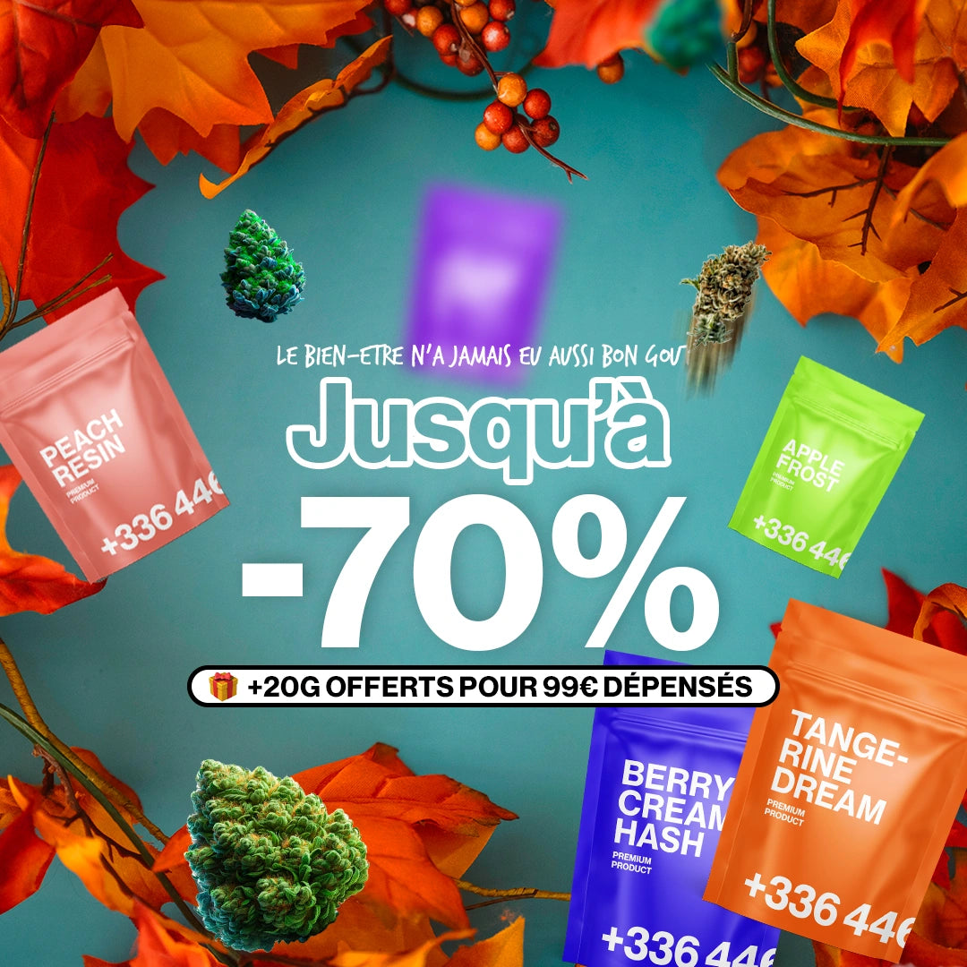 Sur le site de notre boutique de CBD en ligne, tu pourras profiter de promos et d’avantages sur la livraison. Toutes nos commandes sont expédiées rapidement et empaquetées dans des emballages neutres pour garantir la plus grande discrétion. Tu pourras ainsi recevoir ton CBD à l'abri des regards indiscrets, à ton domicile ou en point de collecte.